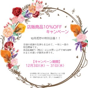 歳末 大感謝祭 12月だけの特別企画!! いつもオンリーガッツをご利用いただきありがとうございます。日頃のご愛顧に感謝して、今年もやります!! 「店販商品10%OFFキャンペーン」 と 「ご来店のお客様全員に粗品プレゼン […]